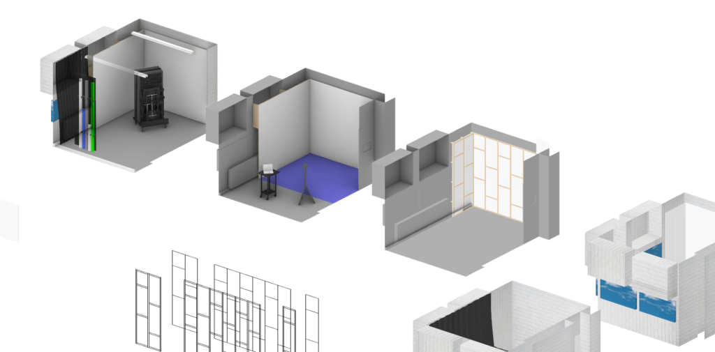 The photo studio and a lending system for equiptment was concepted and built for the Industrial Design course at the State Academy of Art and Design in Stuttgart. With a low-budget and improvised approach, the photo studio was rethought in terms of maximum usability and was renovated and built with found and low-cost materials.