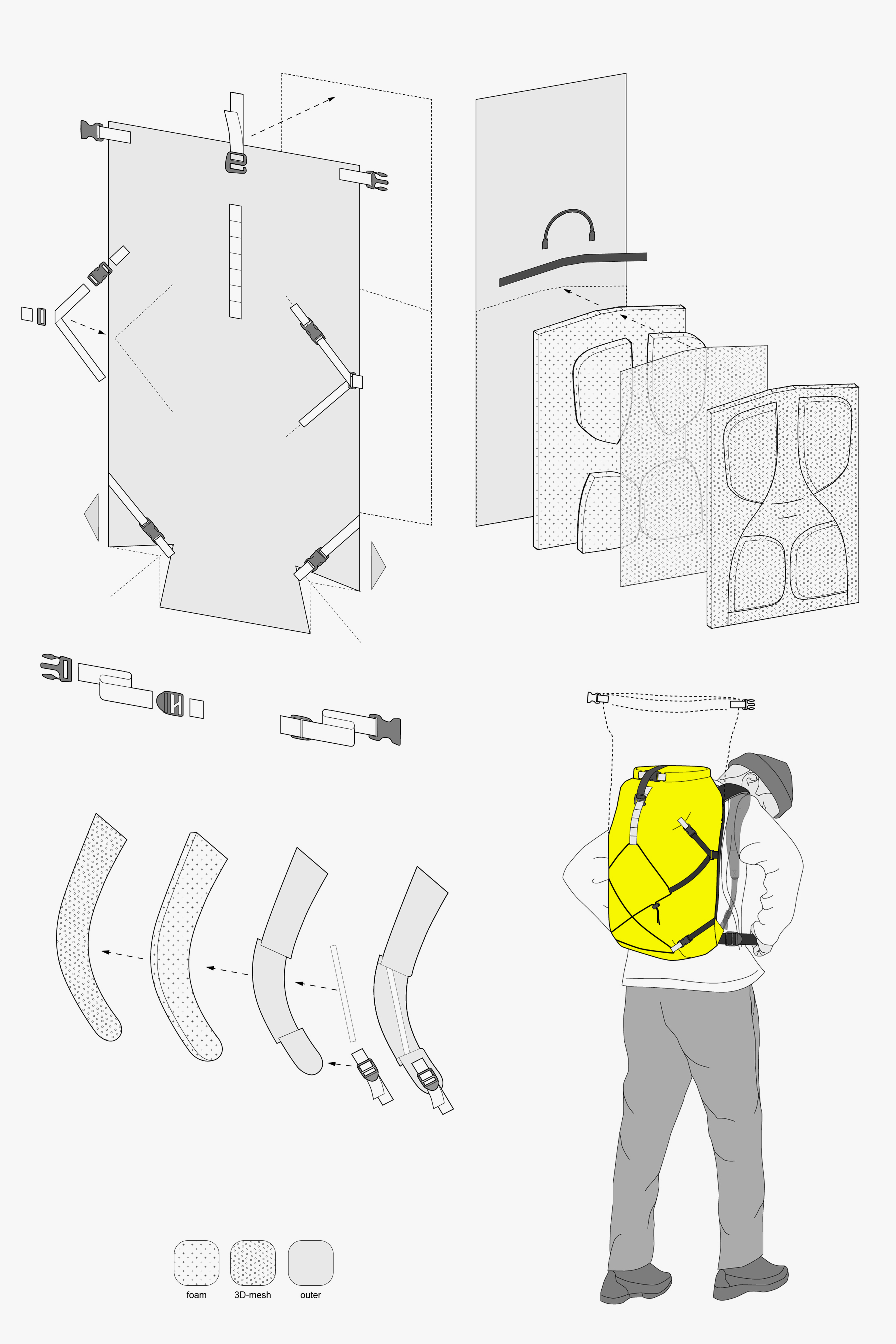 Velcro Backpack #textile #conceptual #zero-waste #fold
