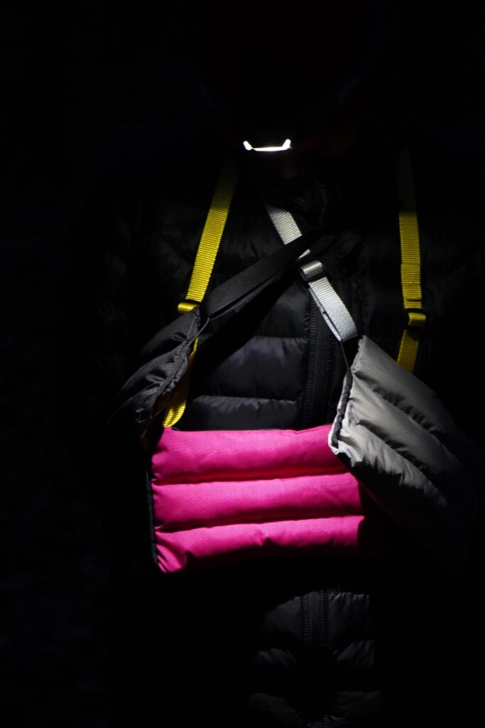 Due to the elastic cord attachment, the strap can move easily and adapts flexibly to the way you carry it, ensuring a comfortable fit without creases on the body but with direct force distribution.